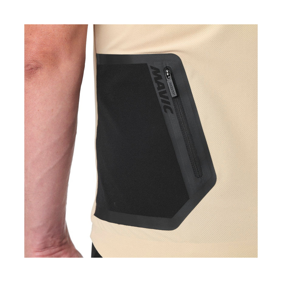 トップには耐久性のあるフランス製ファブリックを使用しており、バックパックを背負ってライディングするときに肩を保護したり、オフロードでの悪天候時に身体を保護する。